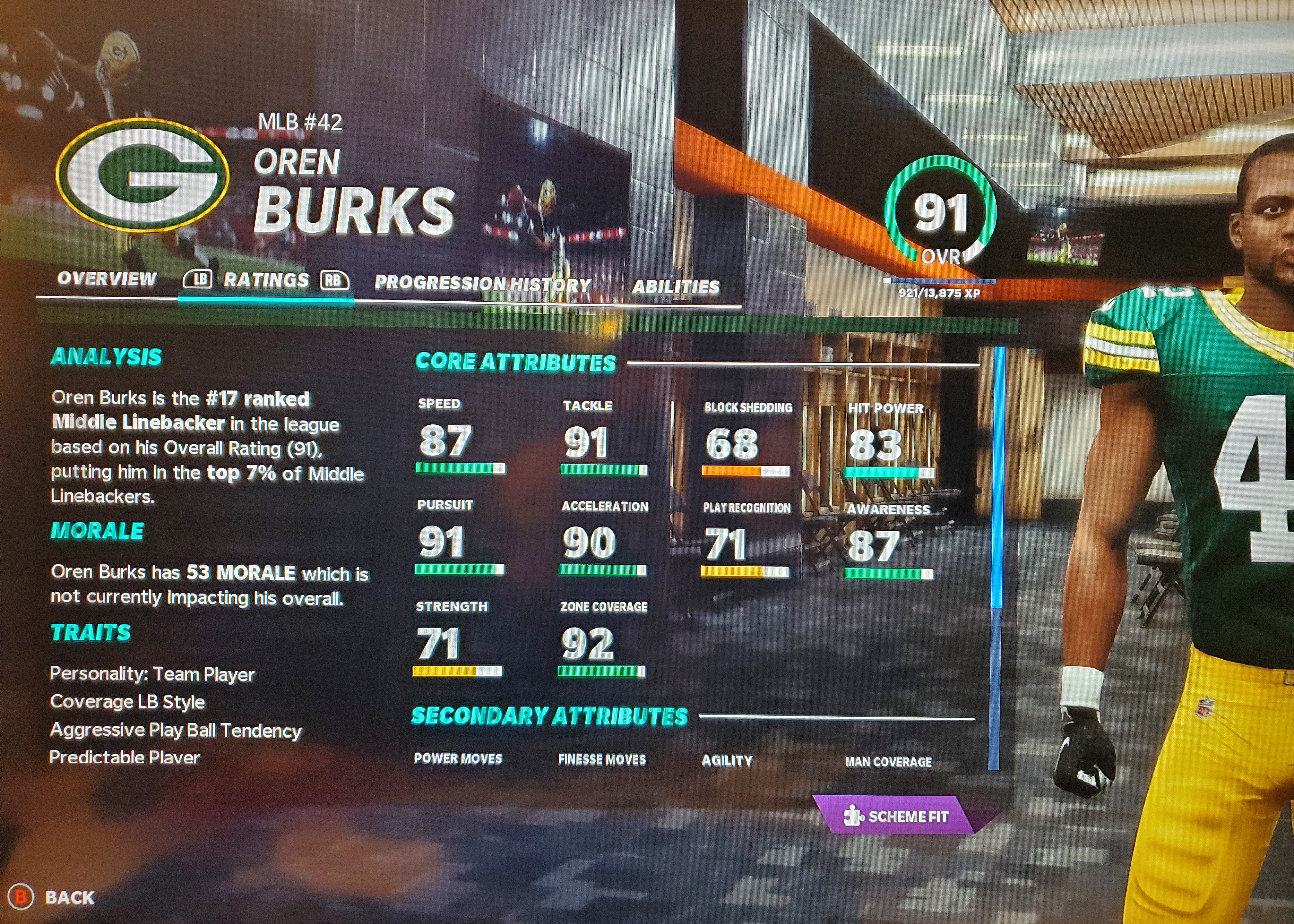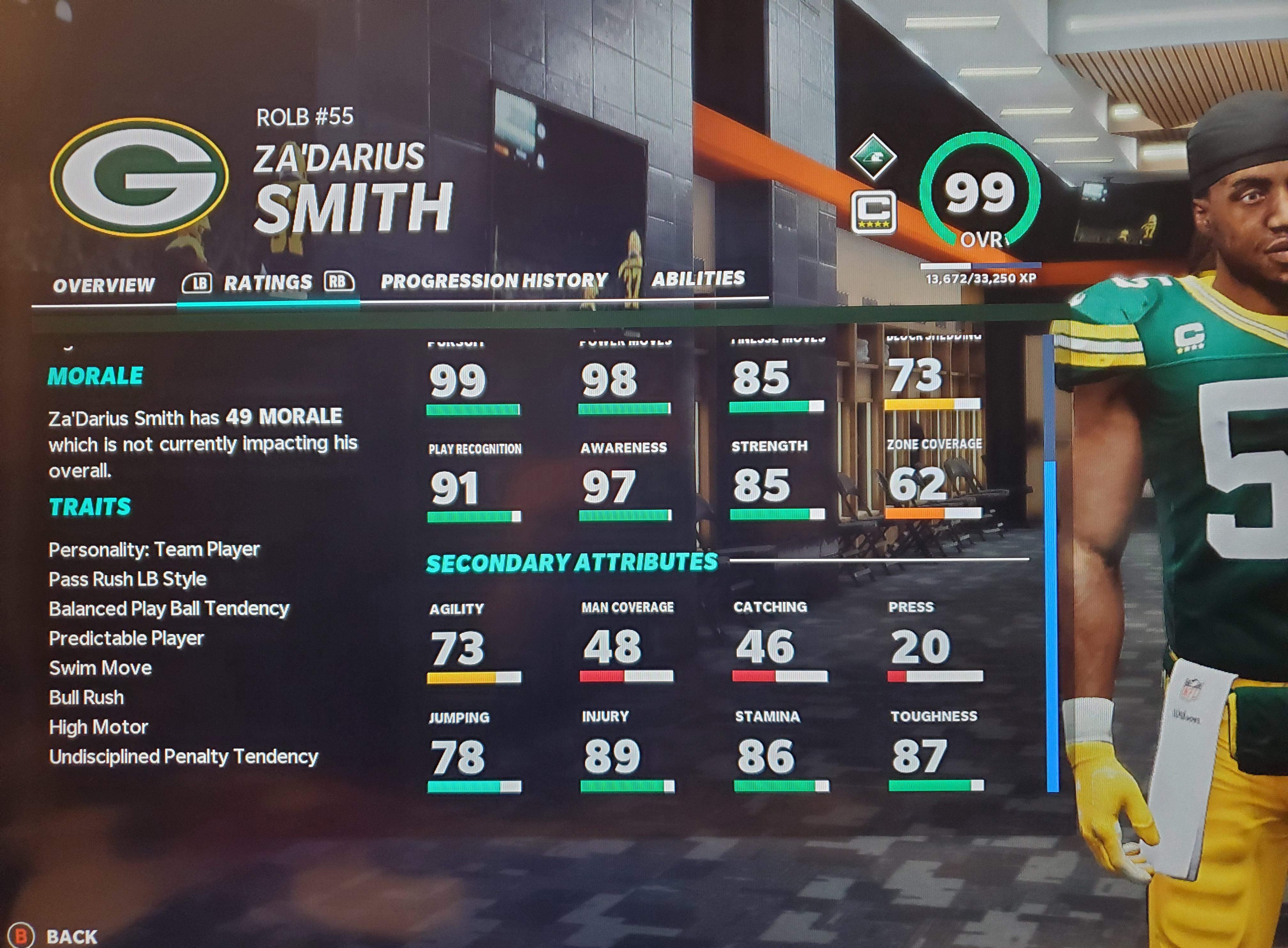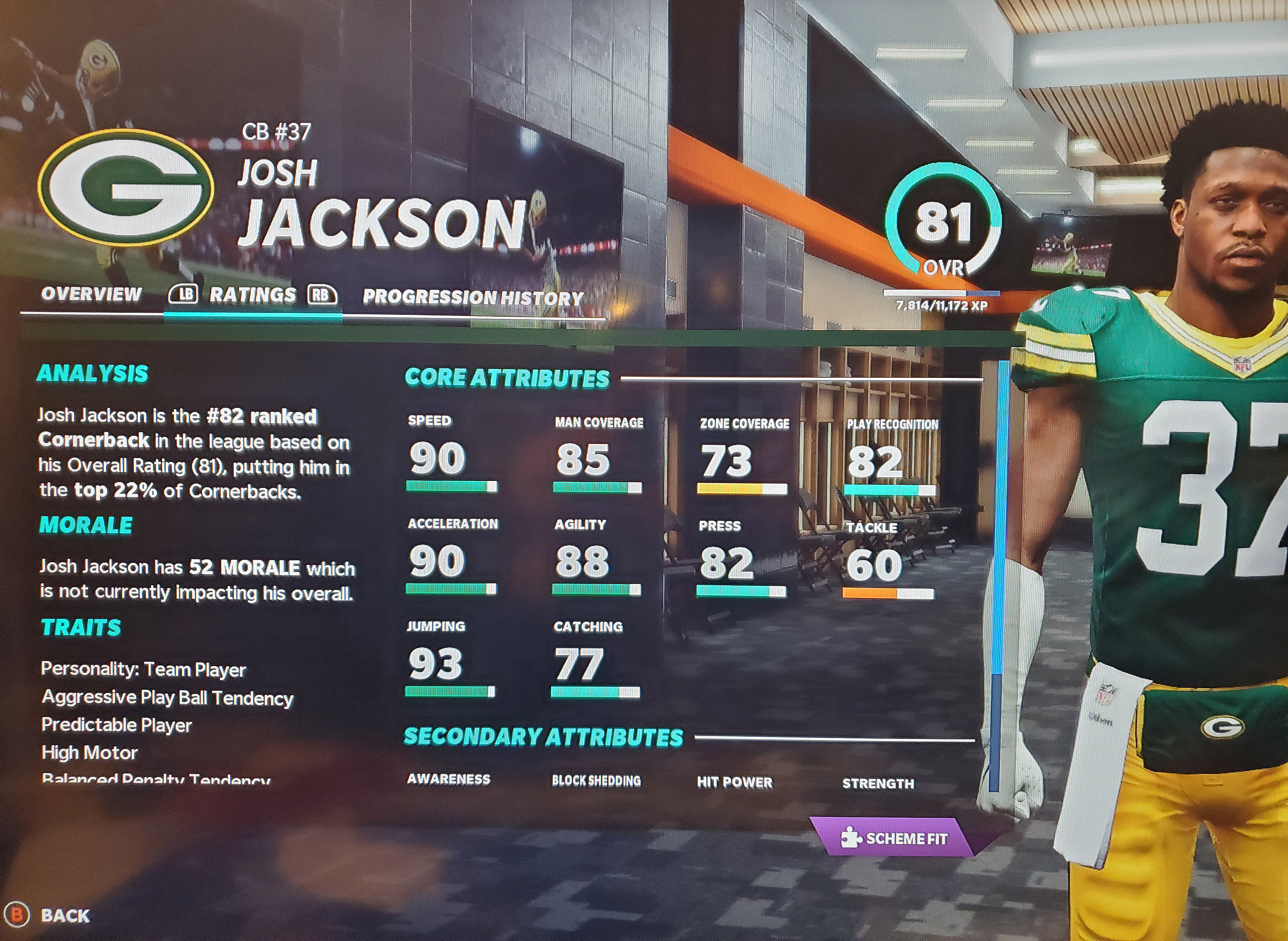 Cornerbacks: The task of matching up against the fastest players on the field falls to the cornerbacks. Not only do they have to be fast, they have to perform the majority of their job as a mirror to the wide receivers. The ability to shut down an entire side of the field like Jaire Alexander or Richard Sherman, your cornerbacks need to have excellent speed, acceleration, agility, and coverage skills. You should also look at change of direction and size when trying to cover receivers like Davante Adams or Michael Thomas.